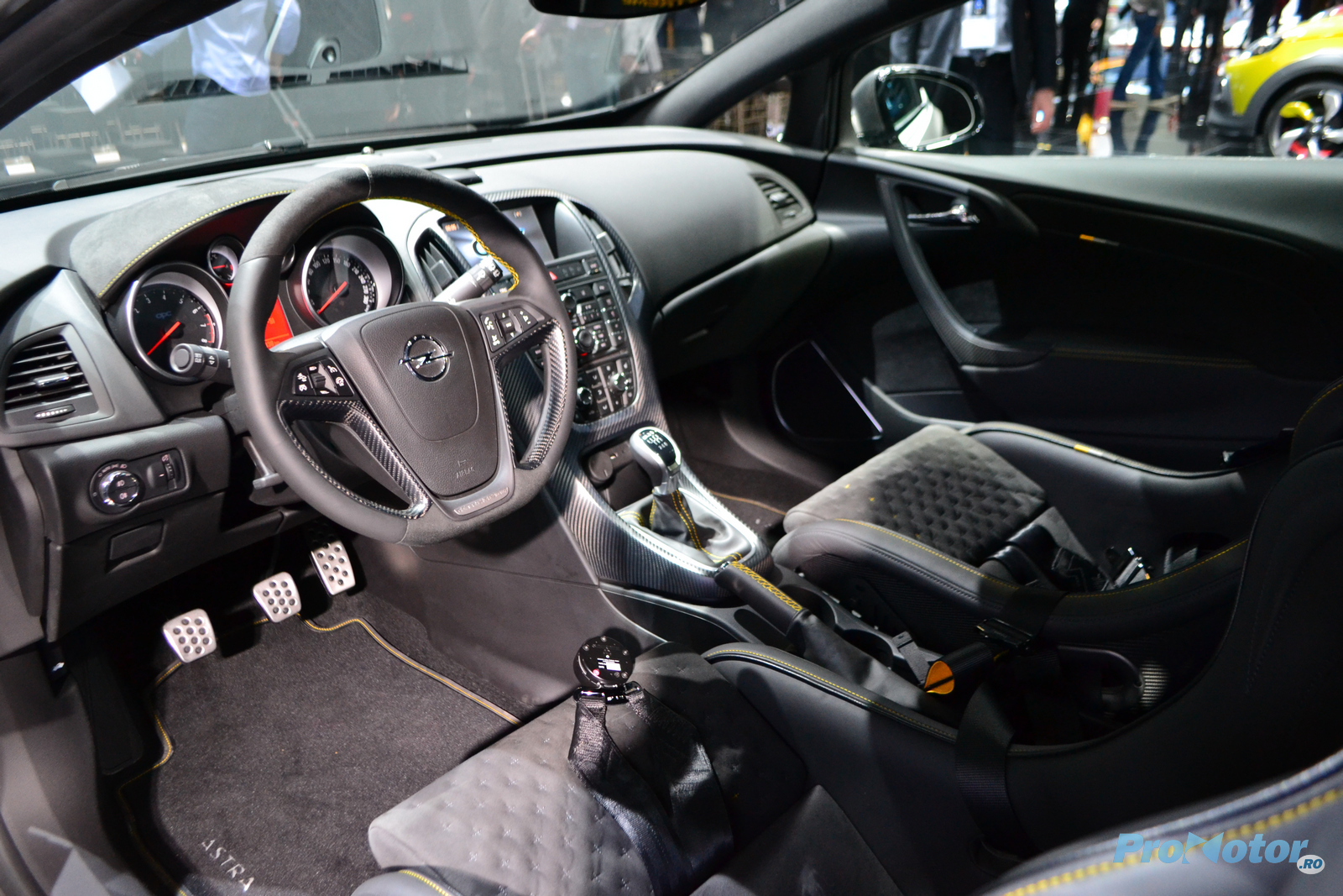 Ne-am făcut curaj, am tras aer în piept şi am intrat în habitaclu, unde am mai primit o porţie de fibră de carbon, ca şi cum primul fel de la exterior nu ar fi fost de ajuns. E uşor totuşi să îţi dai seama că sub toate inserţiile şi emblemele OPC Extreme stă de fapt un Astra obişnuit, pentru că nimic nu s-a schimbat în materie de design, cu excepţia cosmetizării puternice.
