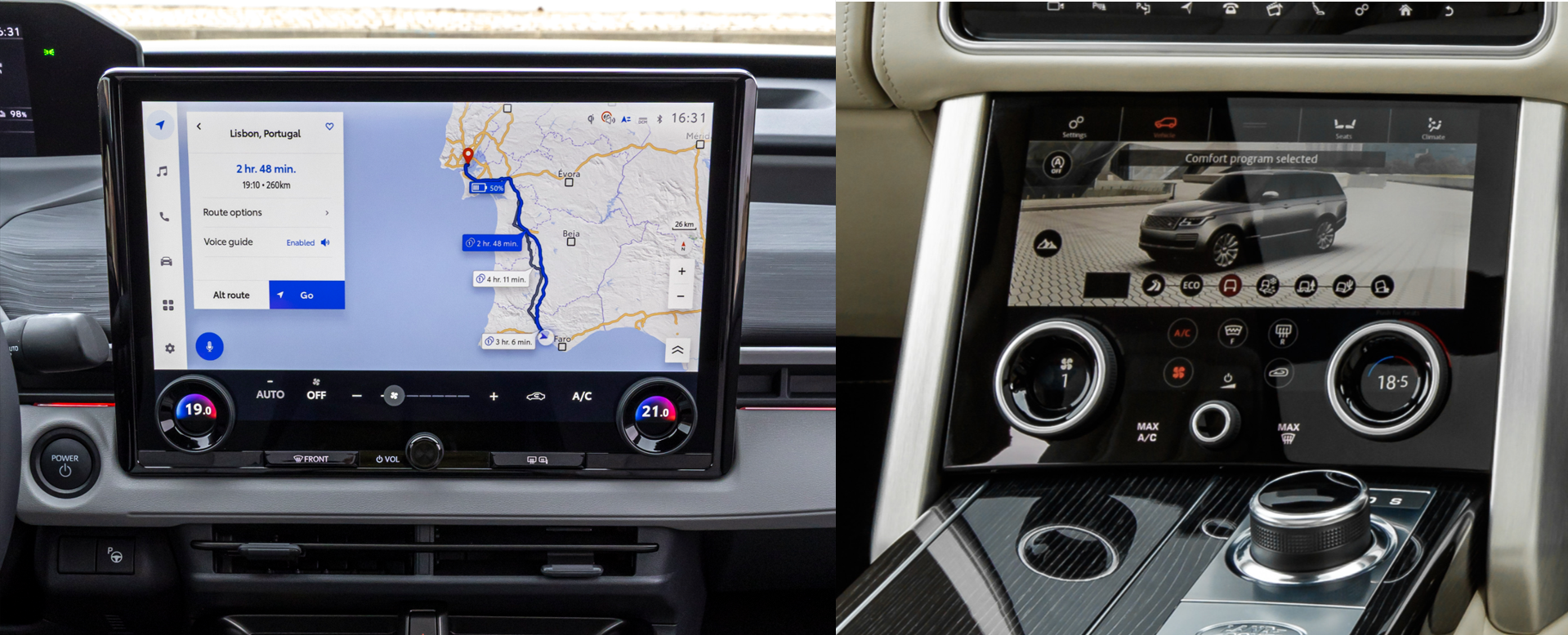 Sistemul Toyota (stânga) și cel al Range Rover din 2019 (dreapta).