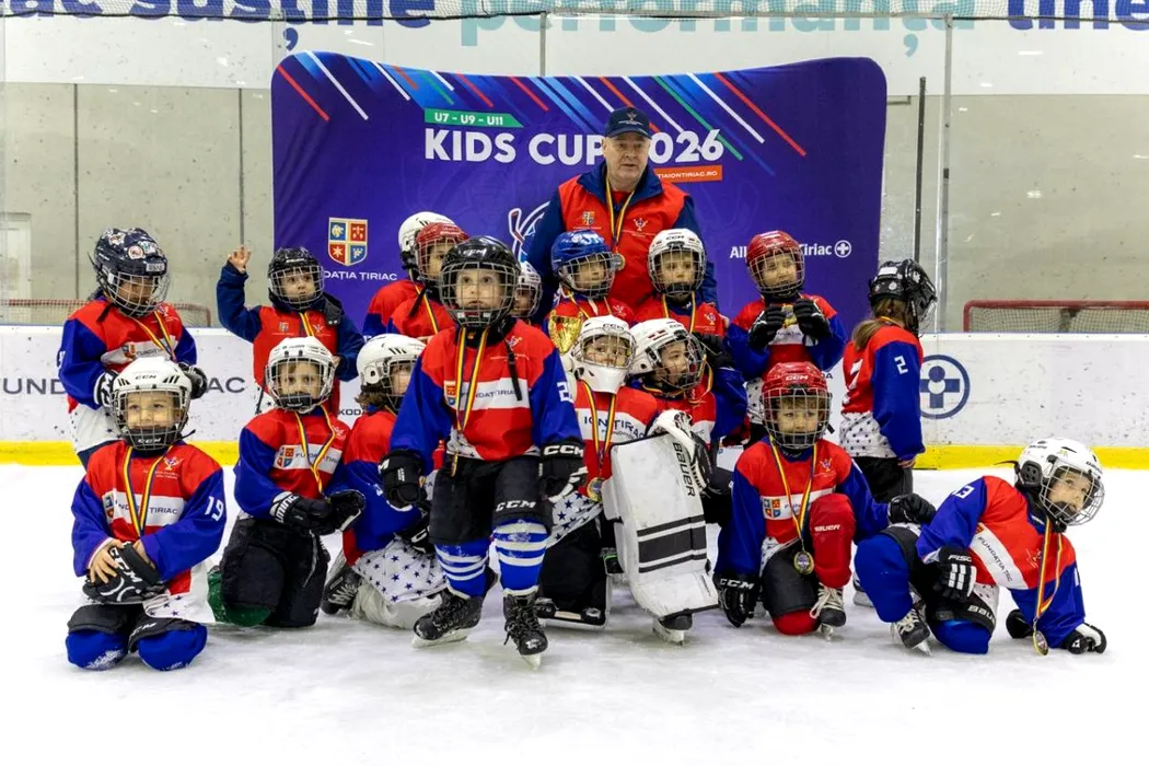 400 de copii, 32 de echipe și două zile de hochei la Kids Cup 2026 Micii sportivi au făcut spectacol pe gheața Patinoarului Allianz-Țiriac Arena, la cea de-a doua ediție a turneului de hochei organizat de Fundația Țiriac, dedicat echipelor U7, U9 și U11