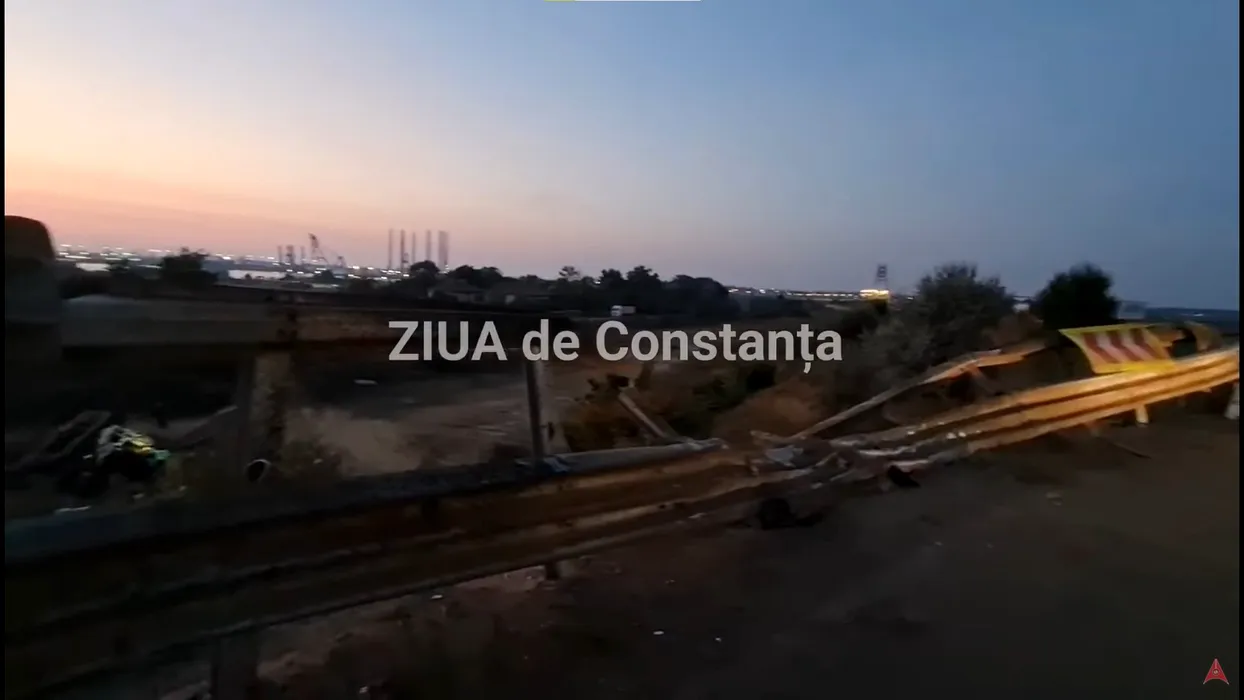 Accident cumplit pe A4: Un TIR cu cereale a lovit un sens giratoriu și a căzut în gol peste 30 de metri