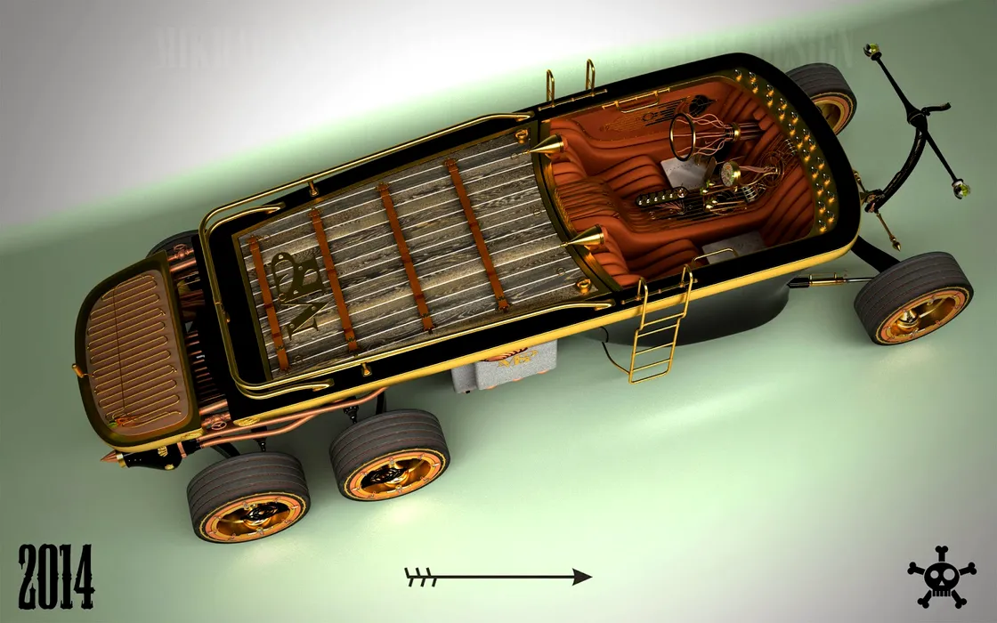 Eşti sătul să tot vezi maşini care copiază una de la alta elemente? Iată aici ceva original: un yaht steampunk de uscat.
