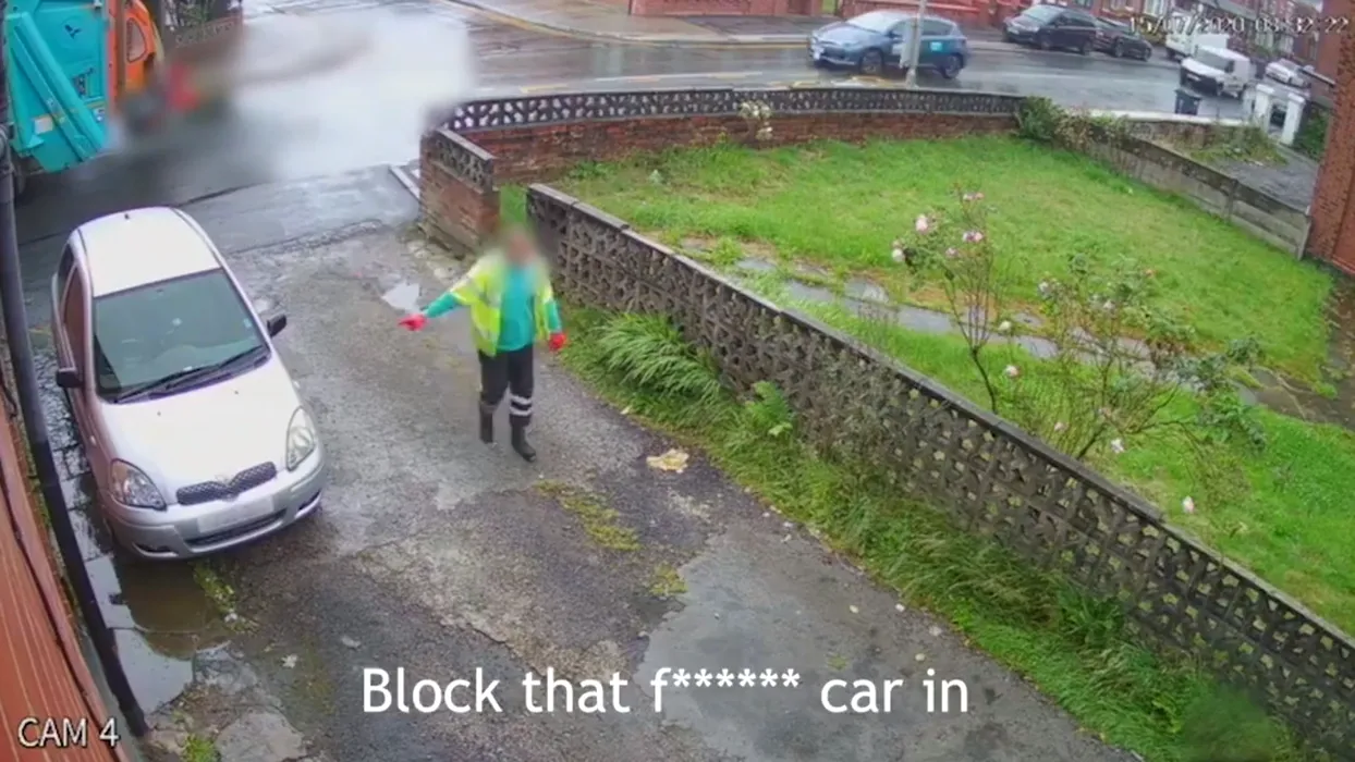 Gunoieri, filmați când blochează o mașină cu tomberoane – VIDEO