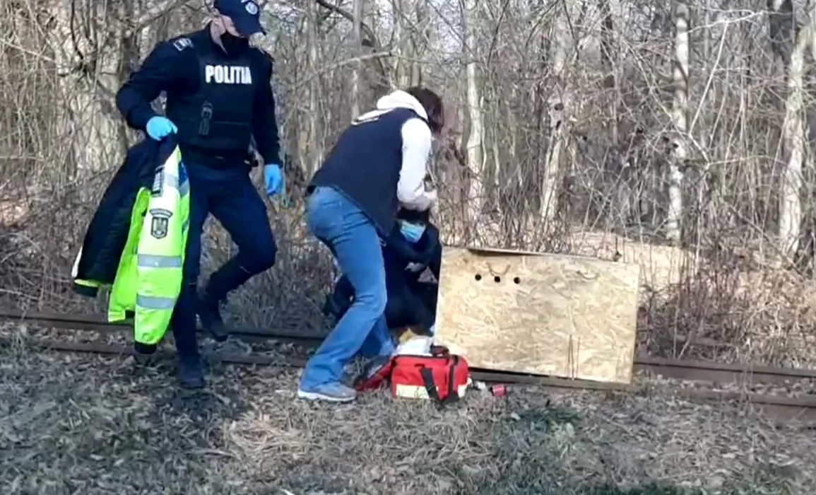 Celebrul polițist din Sibiu a salvat o căprioară rănită. Intervenția a avut loc pe șinele de tren
