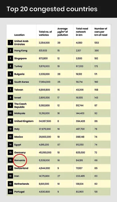 România, printre țările cu cele mai aglomerate străzi din lume
