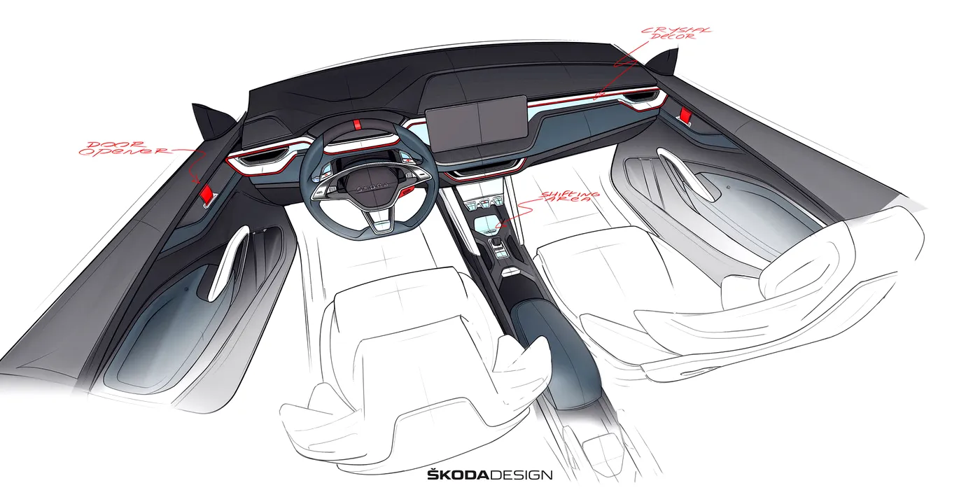 ŠKODA VISION RS îmbină un motor 1,5 TSI cu o putere de 110 kW (150 CP) cu un motor electric de 75 kW (102 CP).