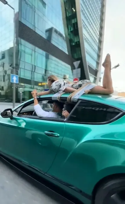 Un influencer și-a legată iubita de acoperișul mașinii și a plimbat-o așa prin oraș – VIDEO