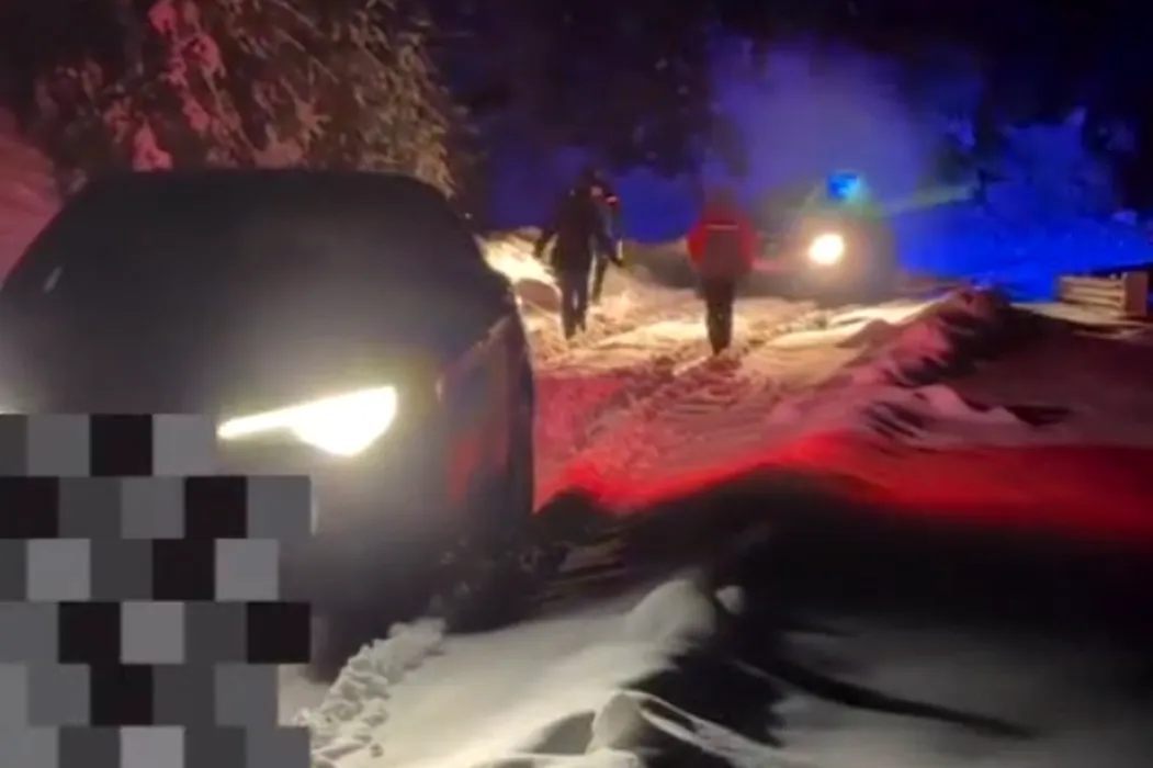 Video: Turiști din București, sprijiniți de jandarmii montani după ce au rămas blocați cu o Alfa Romeo Stelvio