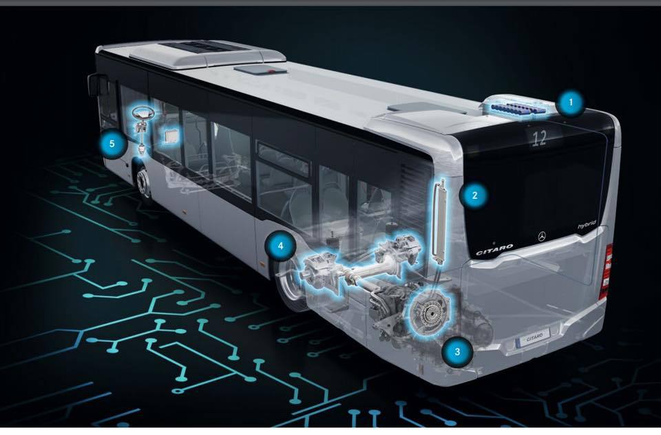 Tehnologia hibridă ce echipează aceste autobuze face ca motorul electric, dispus între motorul termic şi transmisia automată, să funcţioneze atât ca agregat de antrenare a roţilor cât şi ca generator de energie atunci când autobuzul frânează, energie care este la rândul ei este stocată spre a fi folosită la punerea în mişcare a autovehiculului.