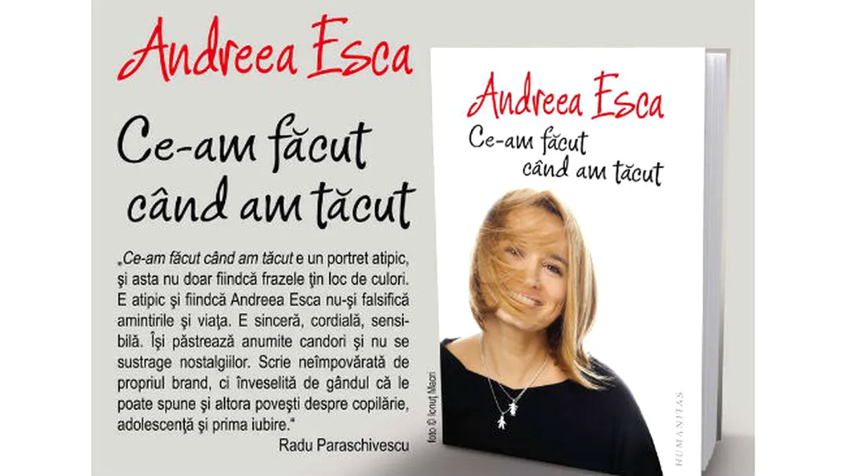 Scriitorul Radu Paraschivescu consideră că volumul „Ce-am făcut când am tăcut” reprezintă „un autoportret din cuvinte” al Andreei. „Ce-am făcut când am tăcut e un portret atipic, şi asta nu doar fiindcă frazele ţin loc de culori. E atipic şi fiindcă Andreea Esca nu-şi falsifică amintirile şi viaţa. E sinceră, cordială, sensibilă. Preferă să fie autentică în loc să-şi dea cu fard pe viaţă. Îşi păstrează anumite candori şi nu se sustrage nostalgiilor. Scrie neîmpovărată de propriul brand, ci înveselită de gândul că le poate spune şi altora poveşti despre copilărie, adolescenţă şi prima iubire”, susţine Radu Paraschivescu.