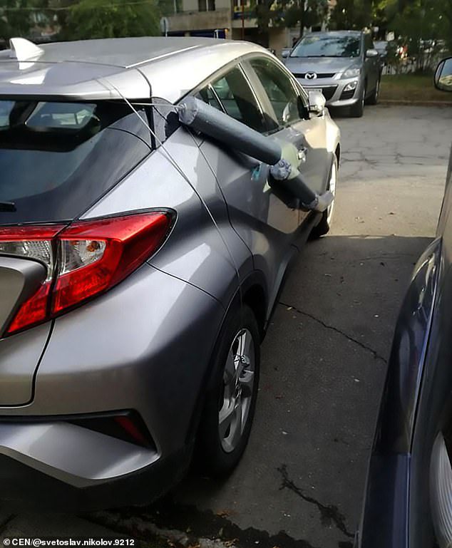 Un şofer bulgar a înfăşurat spumă de polistiren în jurul autoturismului, în încercarea sa de a opri ca vopseaua să fie deteriorată de uşile altor şoferi.
