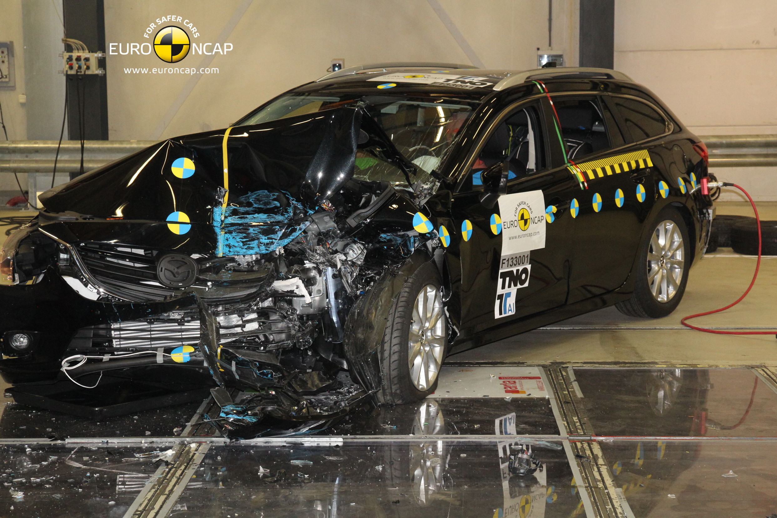 Şi sedanul şi versiunea combi au obţinut punctaje de top în toate cele patru categorii ale testului. Procentele pentru protecţia adulţilor, protecţia copiilor şi pentru asistenţa sistemelor de siguranţă au fost de 92%, 77% şi 81% depăşind uşor nivelurile cerute de fiecare categorie pentru a obţine cinci stele (80%, 60% şi 65%). Mazda6 a înregistrat 66% la siguranţa pietonilor, unul dintre cele mai bune punctaje din Europa pentru maşinile testate anul acesta.