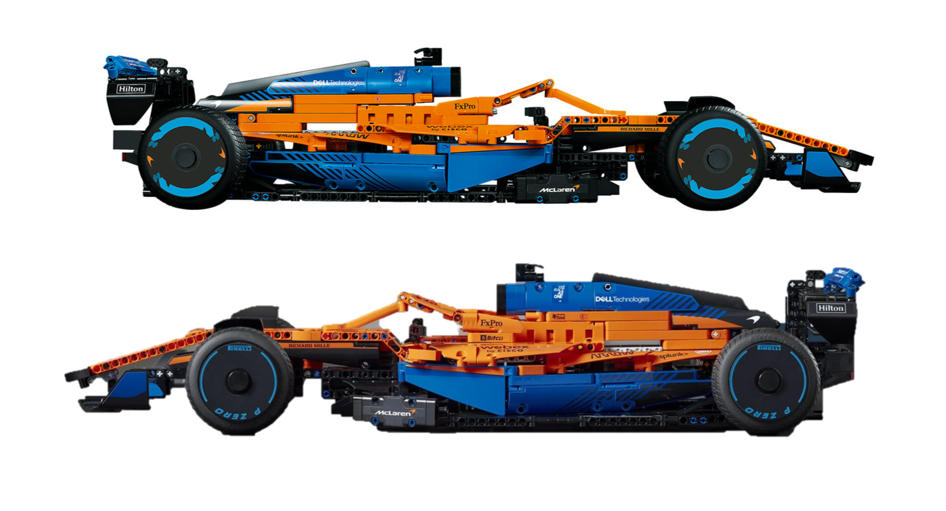 Colaj foto cu diferența dintre cele două tipuri de LEGO McLaren (2022). Sursa foto: LEGO / McLaren