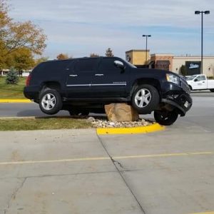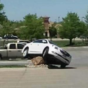 Amuzant sau nu, vă întrebați probabil ce naiba se întâmplă, și cum ajung mașinile cocoțate pe această piatră: șase mașini au rămas blocate acolo în ultima perioadă. Deși nu există nimic deosebit în legătură cu ea, șoferii continuă să o lovească.