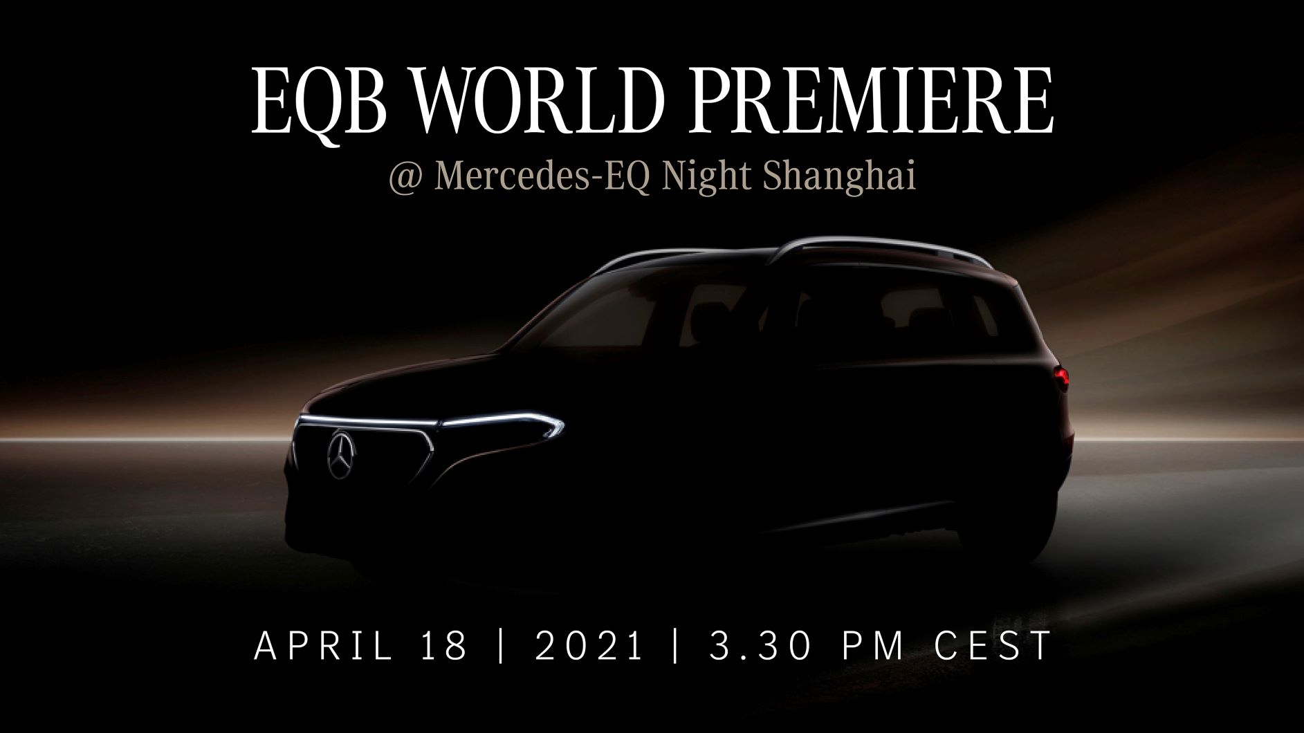 Premiera mondială a EQB – Mercedes-EQ Night Shanghai, va avea loc în cadrul primei zile dedicate presei a Auto Shanghai 2021. Având în vedere situația considerabil îmbunătățită din punct de vedere al pandemiei COVID-19 în China, dezvăluirea va fi posibilă în fața unei audiențe locale. Iar pentru presa internațională va fi disponibilă o înregistrare a întregului moment pe platforma online Mercedes.