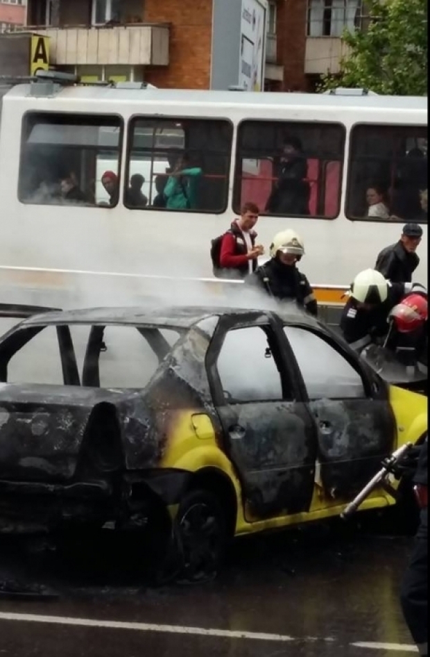 Joi, în jurul prânzului, taximetristul şi-ar fi dat foc la maşina de serviciu şi a lăsat-o să ardă, în trafic, blocând astfel circulaţia pe o bandă.