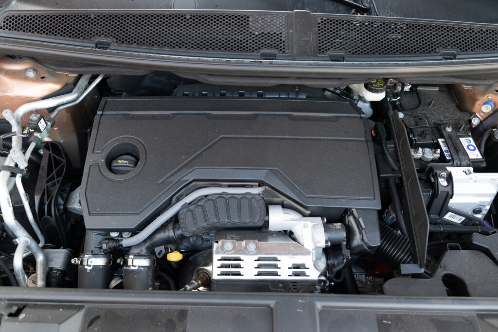 Noi am avut la dispoziție motorizarea mild-hybrid a noului Grandland, însă este o motorizare care are unele valențe interesante, anume că se poate deplasa în mod pur electric în anumite situații, ceea ce reduce consumul de carburant. La baza acestui sistem se află motorul de 1.2 litri turbo, pe benzină, care acum folosește distribuție pe lanț.