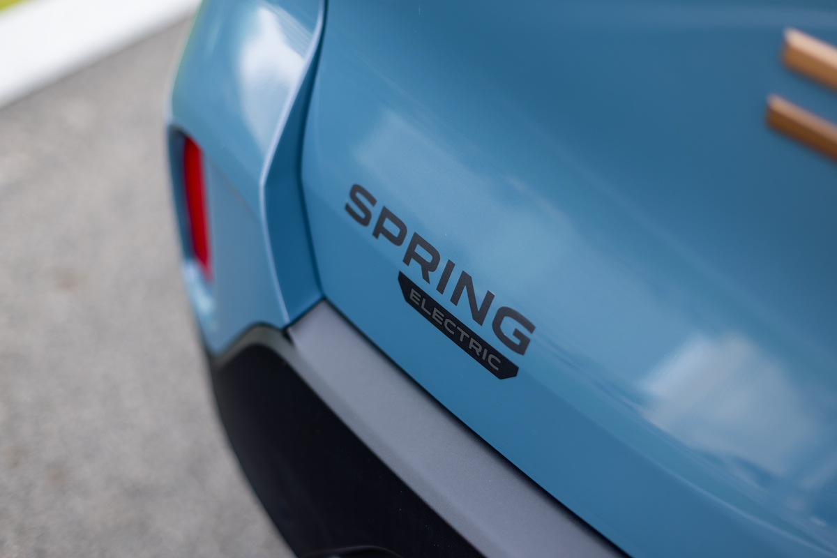 La exterior, Dacia Spring Extreme se bucură de noua identitate de brand a producătorului român, fiind prezentă noua emblemă DC. Cu toate acestea, diferențele importante apar la nivelul detaliilor finisate cu Copper Brown, finisaj regăsit pe toată gama Extreme de la Dacia. Această culoare se regăsește pe elementele din bara frontală, pe capacele oglinzilor, pe jante, dar și pe emblema din partea din spate. Nu sunt schimbări majore, dar conferă mașinii un aer fresh, mai ales în combinație cu noua nuanță de caroserie Slate Blue.