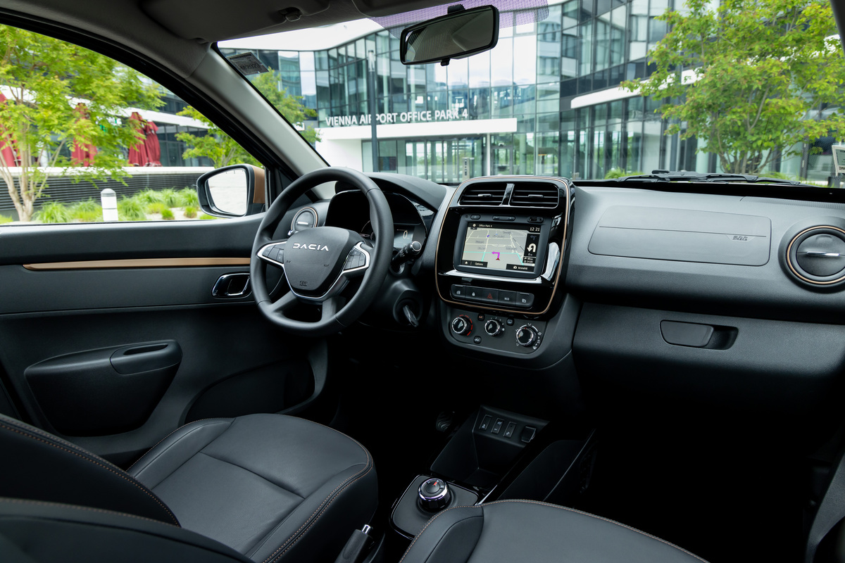 La interior, modificările constau în câteva ornamente în aceeași nuanță arămie, cusături contrastante pentru scaune și covorașe din cauciuc inspirate de o hartă topografică. Per total, rămâne un spațiu micuț, compact, fără pretenții, așa cum ne putem aștepta de la o mașină de buget. Marea problemă intervine pentru oamenii mai înalți. La cei 1,88 metri ai mei a trebuit să mă aplec pentru a putea vedea unele semafoare sau indicatoare, deoarece poziția înaltă de condus și parbrizul îngust nu ajută deloc vizibilitatea. Probabil că oamenii cu înălțimi de până la 1,80 metri nu vor întâmpina această problemă.
