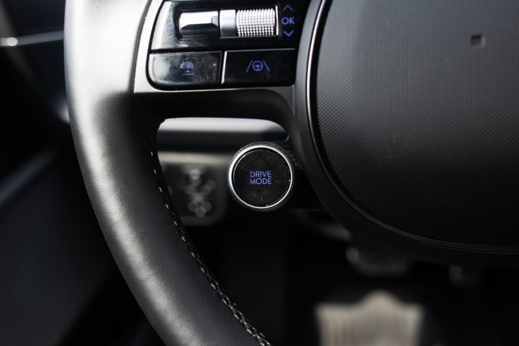 Nivelul de echipare premium pentru Ioniq 6 include și scaune, banchetă și volan încălzite, dar și reglaje electrice pentru scaunul șoferului. Este ușor să îți găsești poziția corectă la volan, mai ales că volanul are reglaje ample și o formă convențională, care nu obstrucționează în vreun fel instrumentarul de bord.