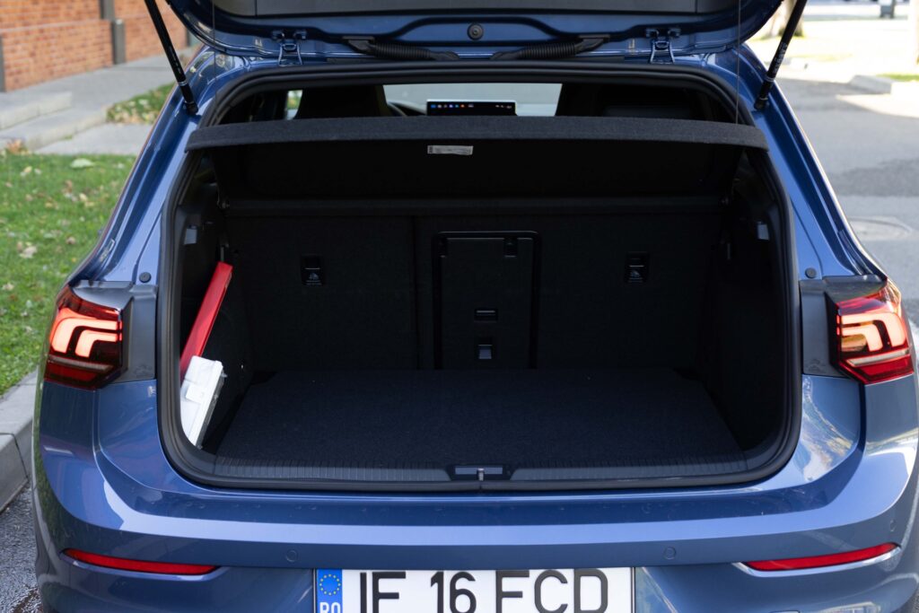 Patru adulți pot călătorii fără probleme la bordul lui Golf, iar portbagajul măsoară 381 de litri, suficient de mare pentru nevoile unei familii tinere. Chiar dacă nu este cel mai mare din clasă – Opel Astra oferă până la 422 de litri în portbagaj – este bine compartimentat.