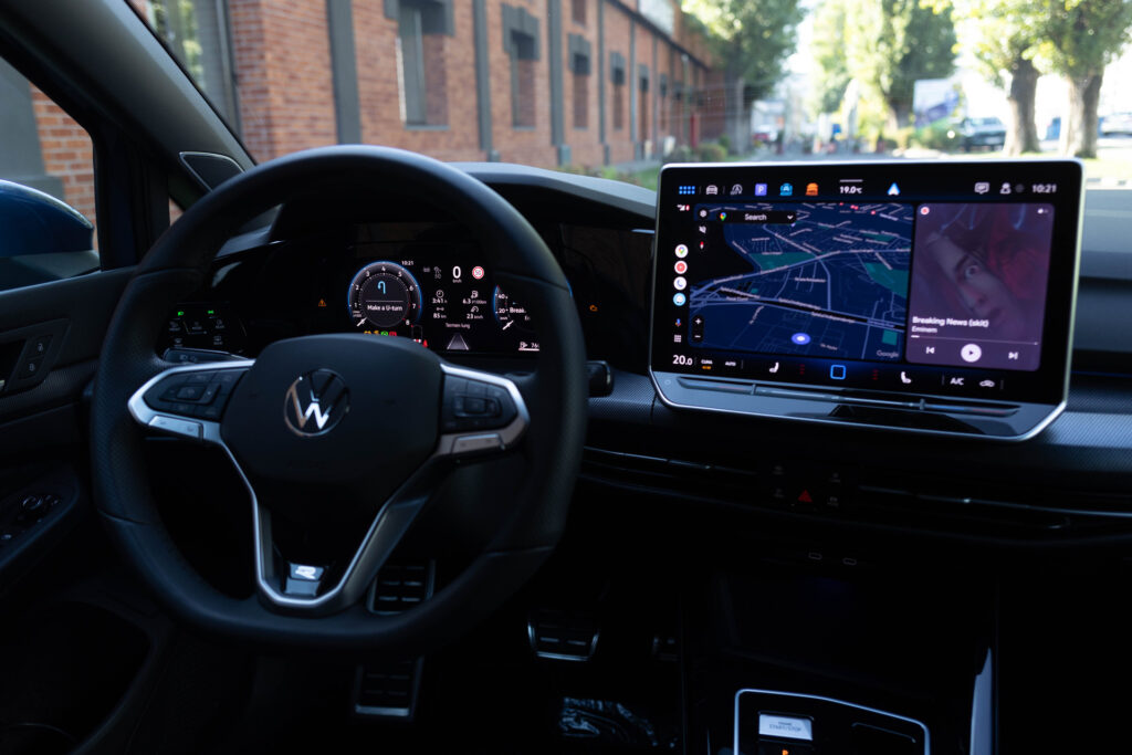 Iar acest lucru ne aduce la noile ecrane de care Volkswagen Golf 8.5 dispune la interior. Fiecare exemplar vine în standard cu un tablou de bord digital și un nou ecran central mai mare, de 10,4 inch în diagonală. Mașina testată de noi a fost dotată cu ecranul central de top, ce măsoară 12,9 inch în diagonală.