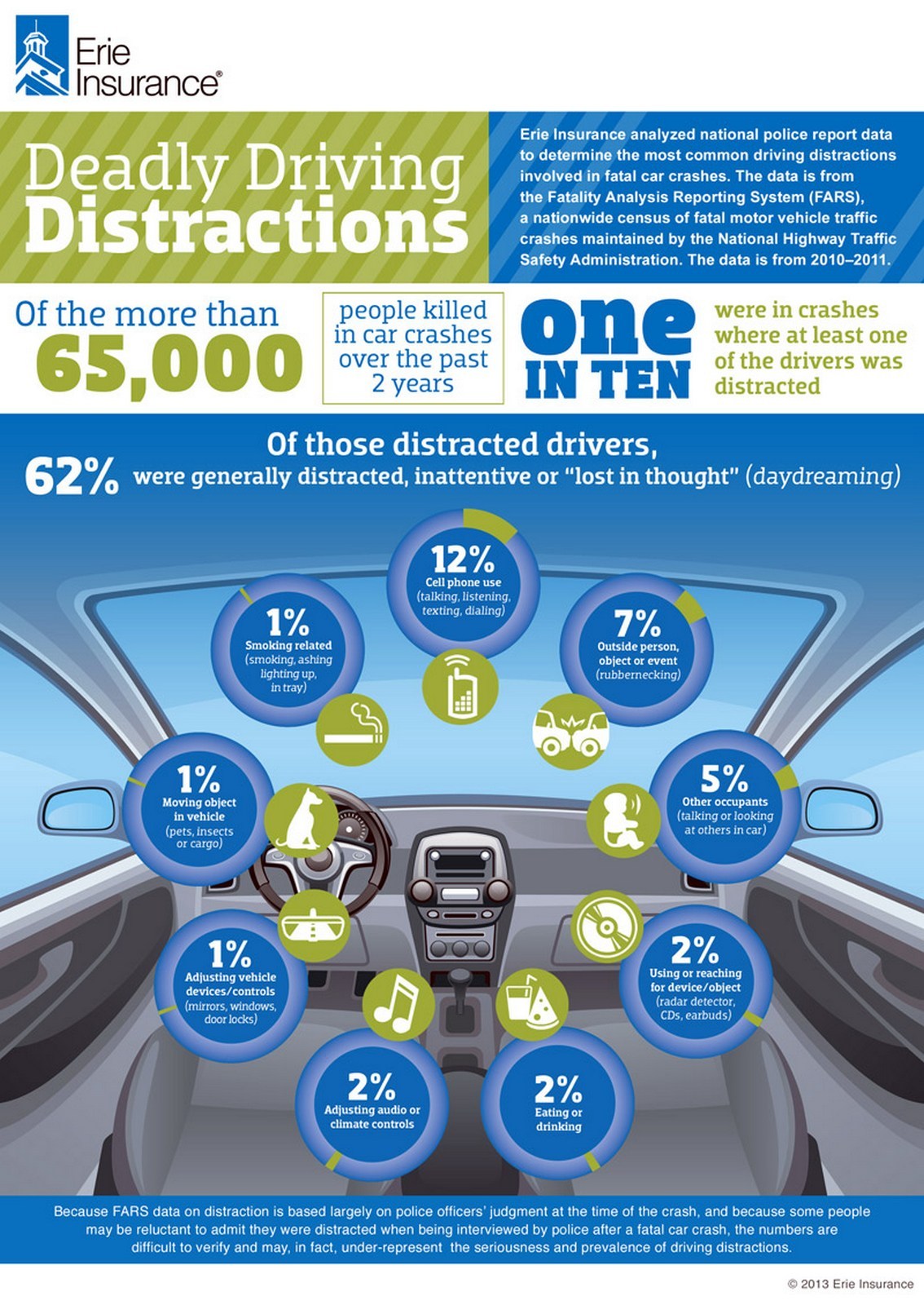 „Conducerea neatentă şi >  fac ca şoferii să nu se mai concentreze 100% la drum, să ia mâinile de pe volan şi să-şi piardă din vedere scopul principal: să ajungă în siguranţă la destinaţie”, a declarat Doug Smith, vicepreşedinte la Erie Insurance.
