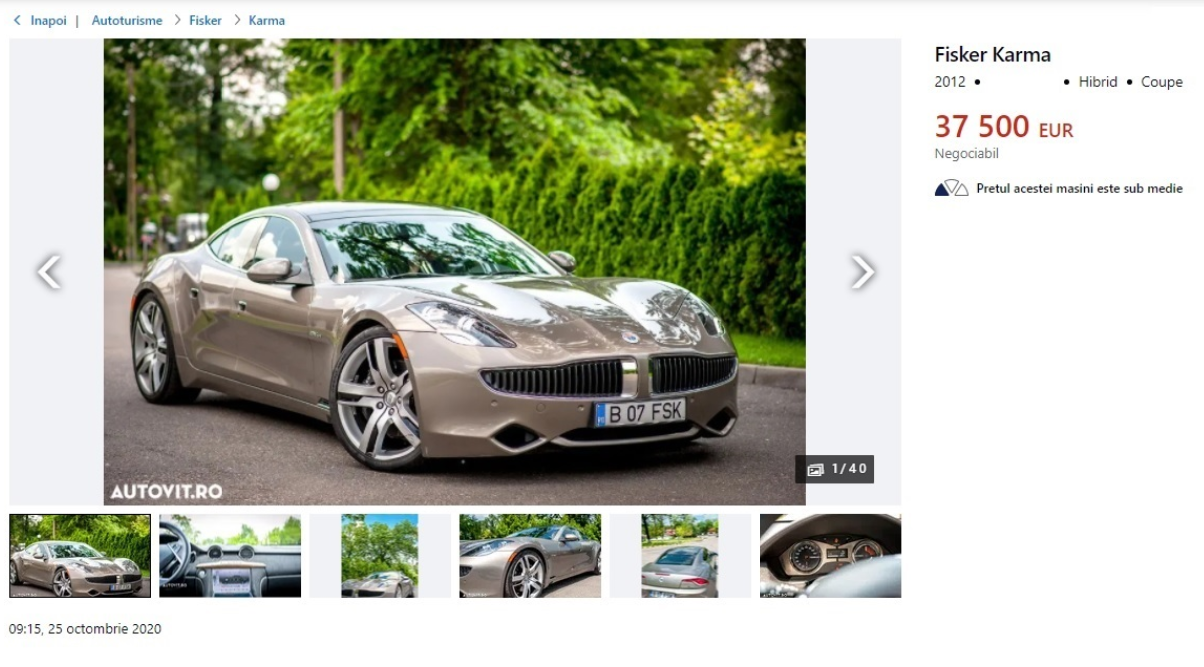 În luna iulie scriam despre vânzarea unui hipercar foarte special – Fisker Karma, unicul din România. La acel moment mașina se vindea cu 44.500 de euro și avea un rulaj de 22.500 km.