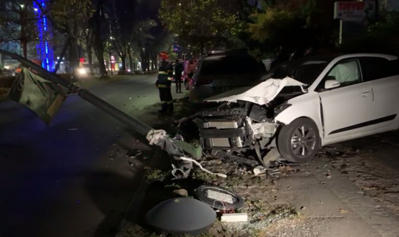 În urma impactului, mașina condusă de tânărul în vârstă de 22 de ani a lovit un stâlp și a avariat alte două vehicule, care erau parcate pe trotuar.