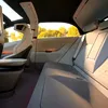 Modelul expus rulează pe jante de 21 inch cu design în Y, iar geamurile fără ramă și linia descendentă a montantului lateral oferă o imagine premium, mai apropiată de un coupe sportiv decât de un sedan clasic.