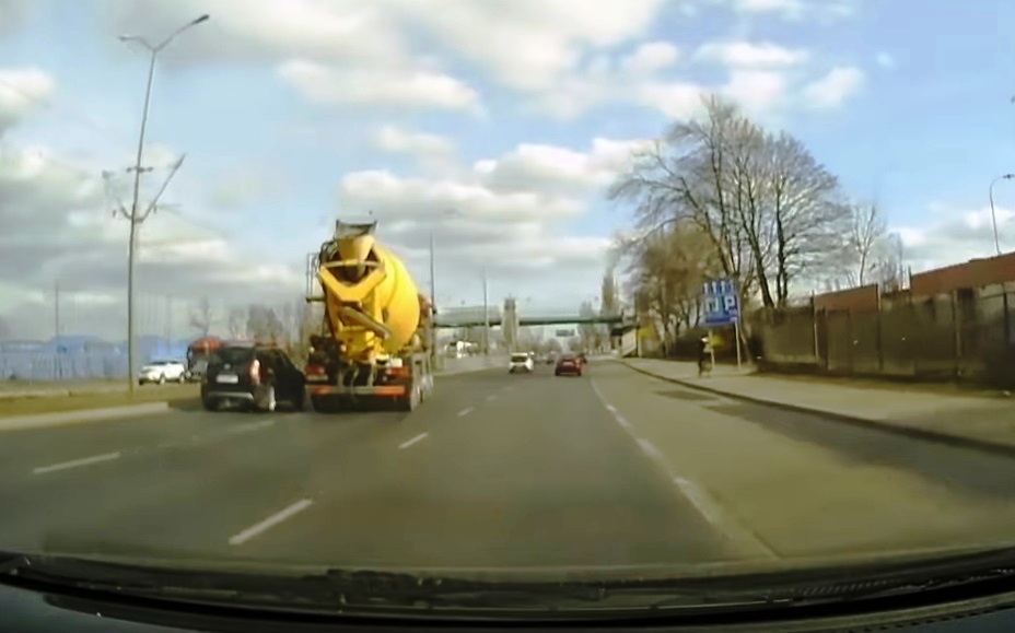 Un astfel de incident a avut loc pe o autostradă din Polonia, între o Dacia Duster și o betonieră. Nu se știe ce s-a întâmplat anterior. Este posibil ca șoferul Daciei să fi depășit mașinile prin dreapta, iar cel de la volanul betonierei să nu fi agreat manevra și să fi răspuns printr-o șicanare.