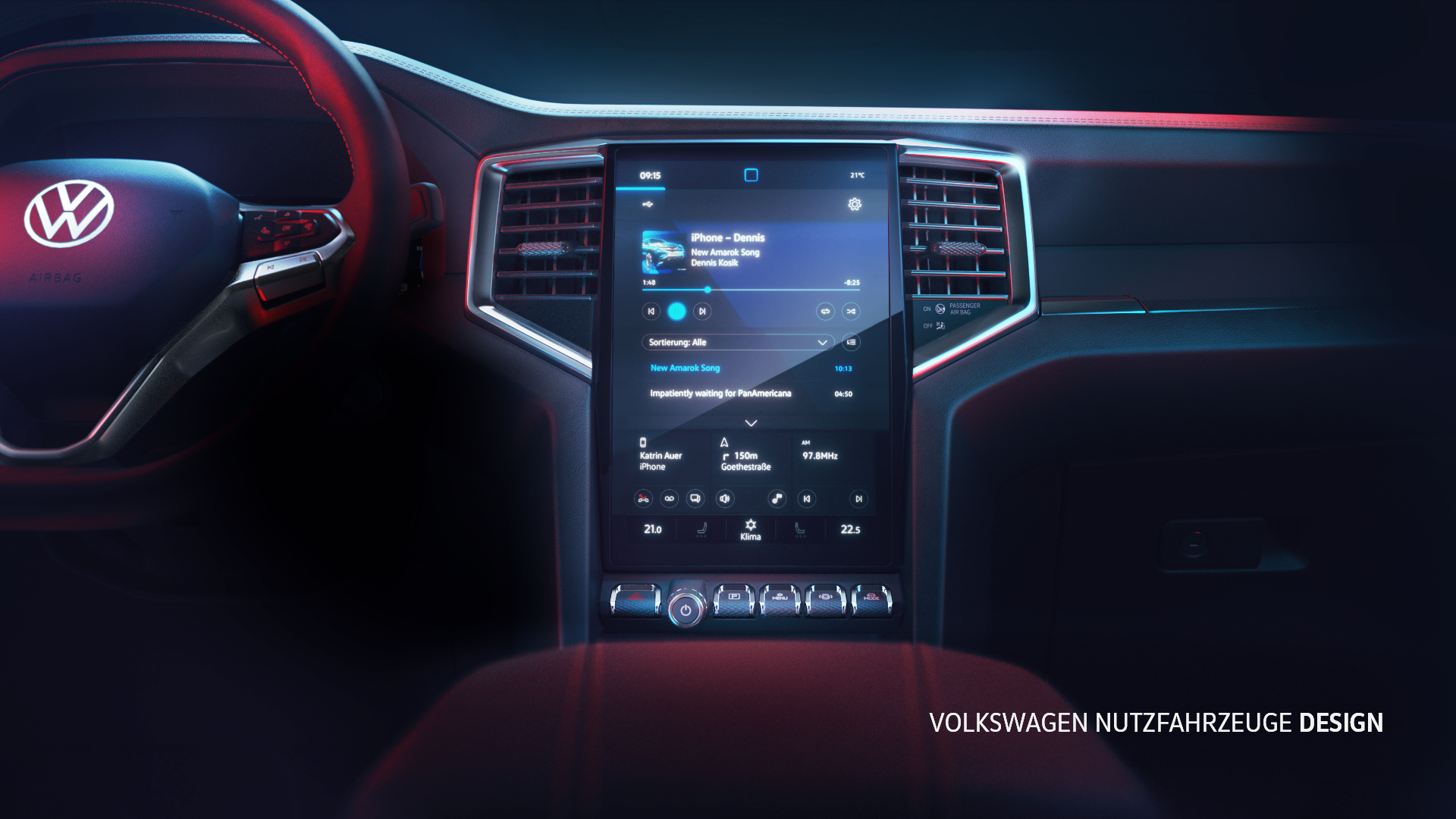Potrivit informațiilor publicate de VW, display-ul central de tip tabletă integrează mai multe funcții de conectivitate și un design premium. De asemenea, acesta mai oferă, între altele, comenzile pentru sistemul de climatizare, funcția de încălzire a scaunelor frontale și setările mașinii. Ecranul tactil în stil portret de pe noul Amarok este amplasat între gurile de ventilație. Acestea par a avea un aspect ușor diferit față de cele de pe Ford Ranger, având o formă mai unghiulară.
