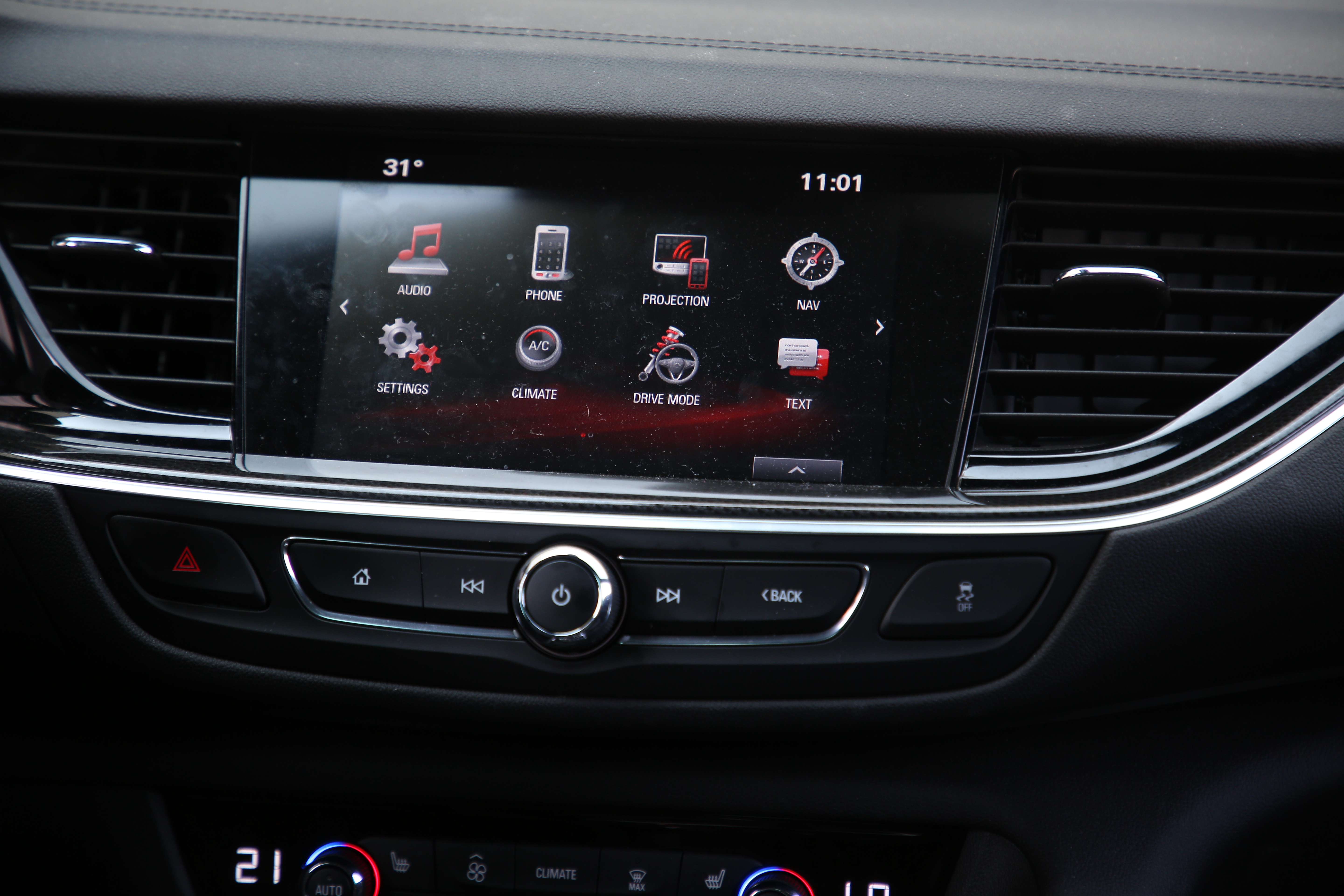 Insignia GSi este dotată cu cele mai noi sisteme de siguranţă: frânare automată de urgenţă cu detectarea pietonilor, asistenţă la schimbarea benzilor, asistent pentru menţinerea benzilor de cirulaţie. Head-up display-ul afişază pe parbriz informaţii esenţiale despre maşină aşa că şoferul nu trebuie să-şi ia ochii de la drun. Informaţiile despre sistemul de infotainment sunt afişate pe un ecran tactil de 8 inci. Grafica este foarte plăcută, şi se navighează foarte uşor prin meniuri. Nu lipsesc aplicaţiile prin care te poţi conecta la smartphone (Apple Car Play şi Android Auto).