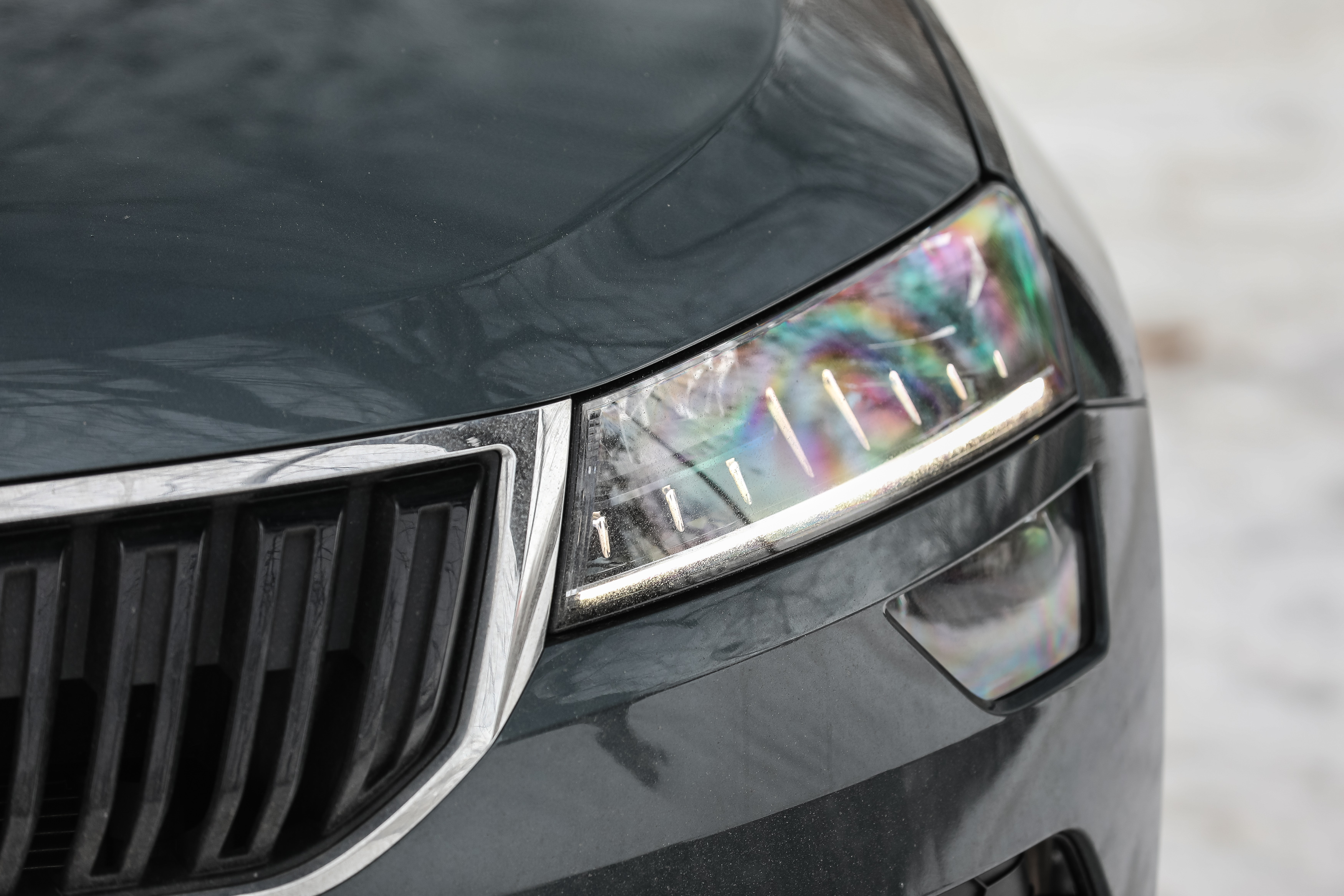 Pe bord şi pe uşi găsim şi o dungă LED care poate afişa diferite culori şi adaugă un plus de eleganţă. Totodată, uşile din faţă proiectează pe asfalt numele Skoda – un detaliu premium.