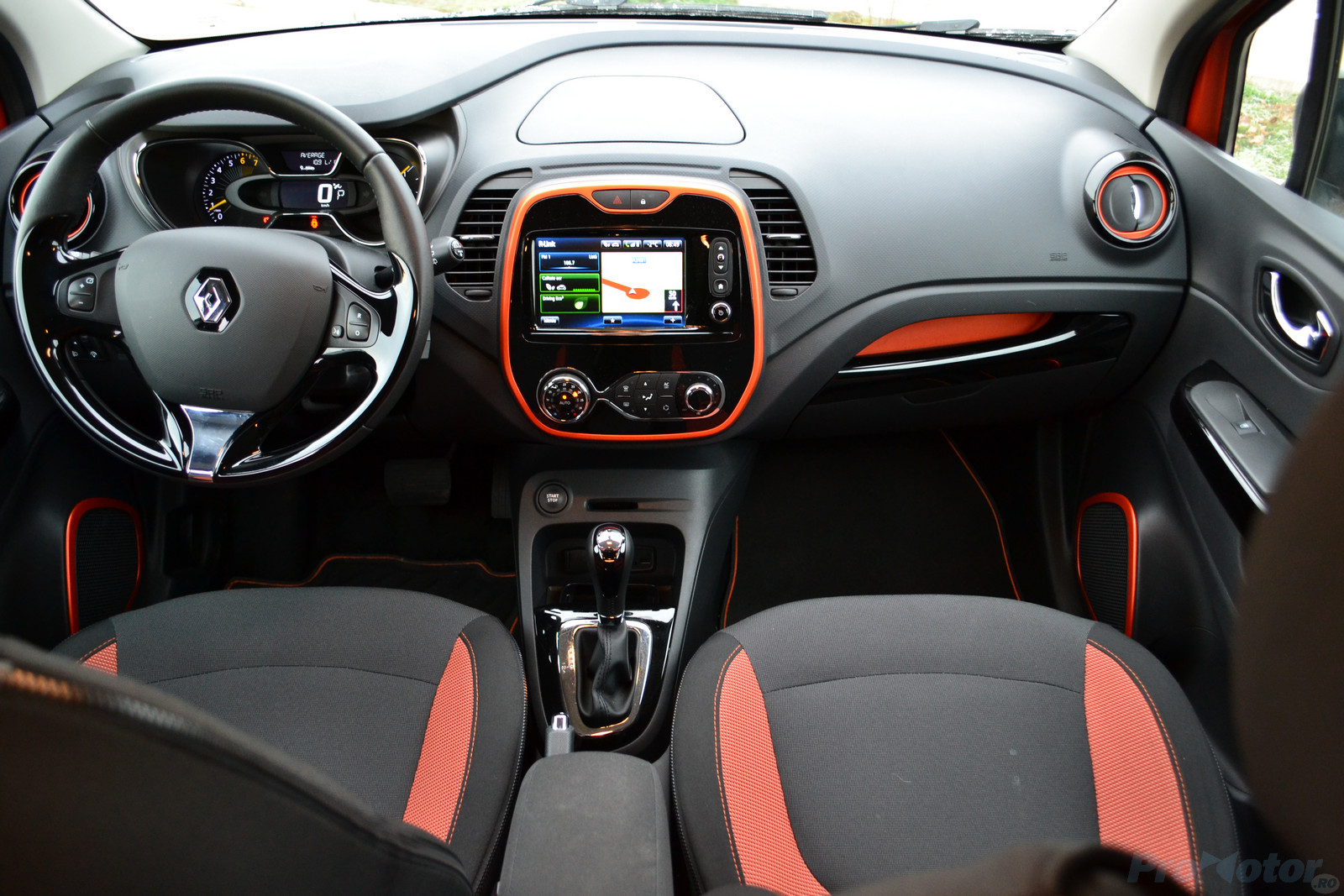 Dar Captur este o maşină care vrea să fie funky – o poţi personaliza în câte feluri vrei, întoarce capetele tuturor fetelor de pe stradă (pe testate), iar interiorul îţi spune că e sporty şi hip şi mai ştiu eu ce alte cuvinte la modă acum… Pe scurt, încă de când am stat de vorbă cu designerul ei, Laurens van den Acker, la salonul de la Geneva din 2013, am aflat că maşinuţa e gândită pentru aventură – nu una offroad, ci una tipică tinerilor care vor să-şi ia prietenii într-o maşină veselă şi să dea o fugă până la munte. Sau la mare. Sau unde vor ei.
