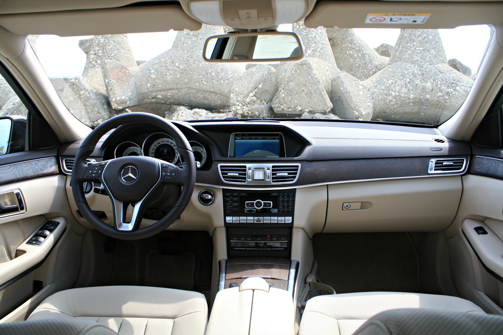 OK, aici vine partea în care „vechi” – ca percepţie a trecerii timpului – poate fi folosit fără ca nimeni să se supere. Modelele mai mici şi mai recente din familia Mercedes-Benz au primit, mai toate, tablete pe bord (în conformitate cu noul trend de interioare) şi au încorporat cât mai eficient şi elegant funcţiile maşinii. E-Class este elegant – ceasul analogic de pe bord e un undiciu, nu? – şi are materiale frumoase, însă are şi unele scăpări la capitolul ergonomie, cum ar fi controalele pentru scaunele multicontur.